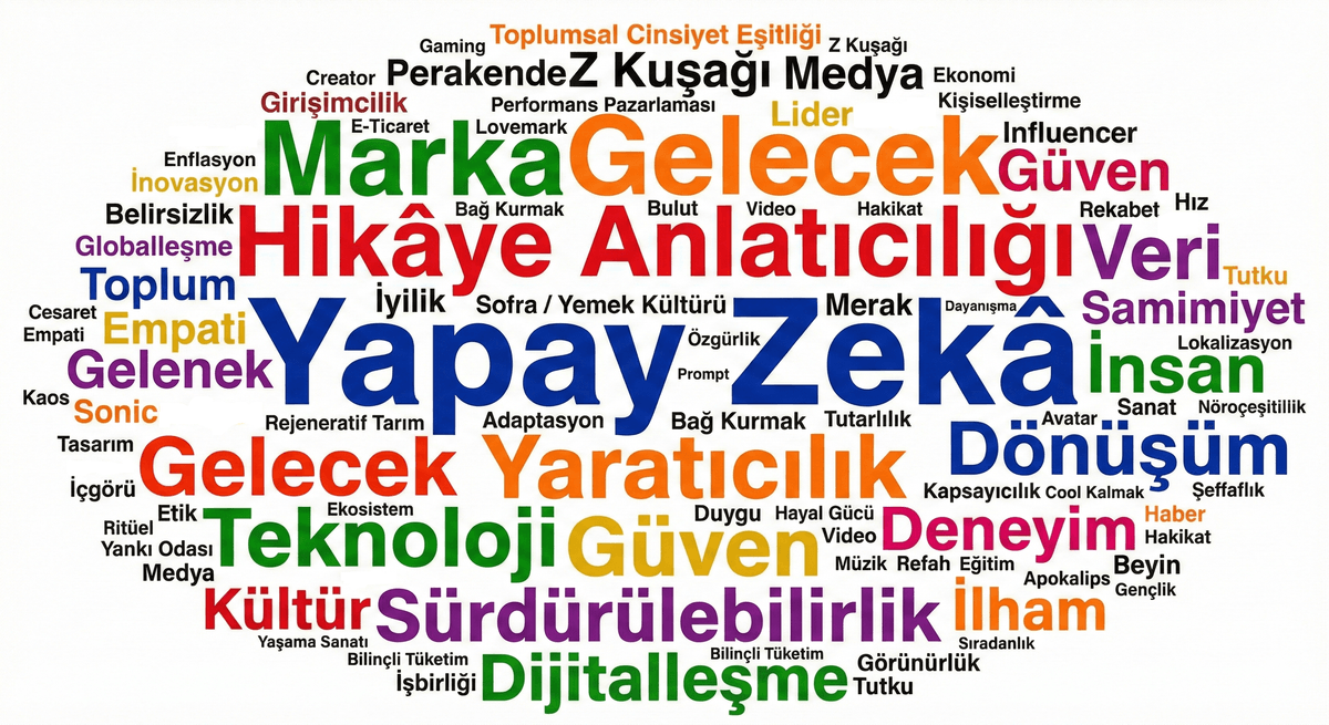 Üç gün boyunca sahnelerde yankılanan binlerce kelime arasından süzülerek, pazarlama ve yaratıcılık dünyasının yeni odak noktalarını işaret eden en baskın kavramların görsel analizini aşağıda bulabilirsiniz. 👇